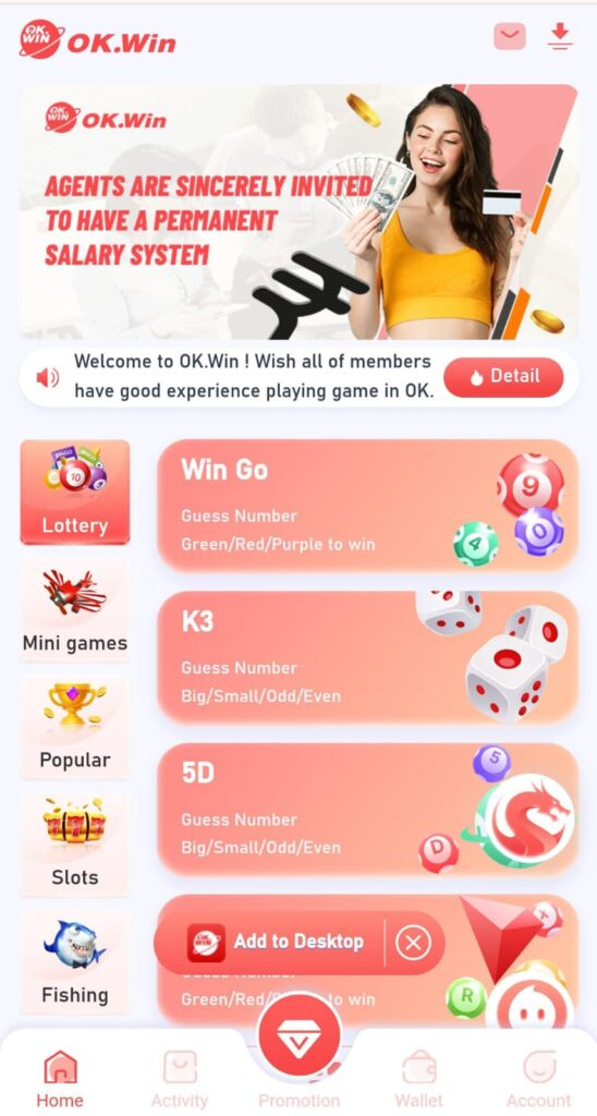 आजकल इंटरनेट पर कई तरह के online gaming और color prediction platforms लोकप्रिय हो रहे हैं। इन्हीं में से एक नाम Ok Win का भी अक्सर सुनने को मिलता है। बहुत से लोग गूगल पर “Ok Win Login”, “Ok Win App Download” या “Ok Win Register” जैसे keywords सर्च करते हैं ताकि इस प्लेटफॉर्म के बारे में जानकारी प्राप्त कर सकें।